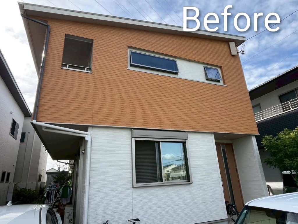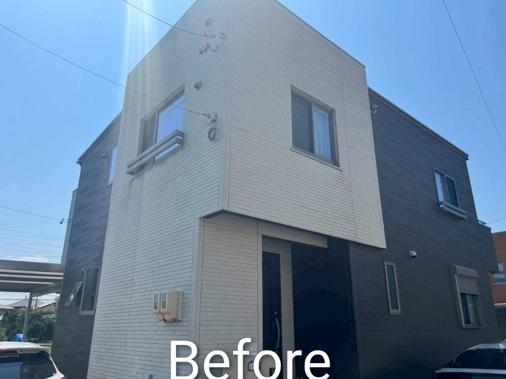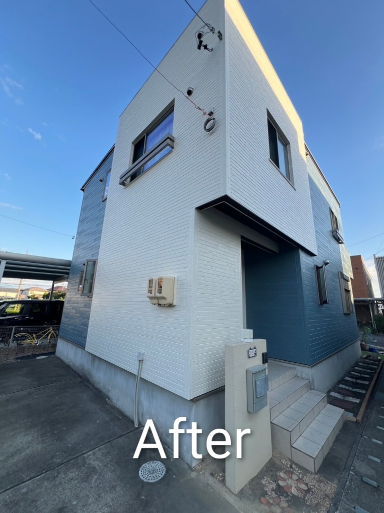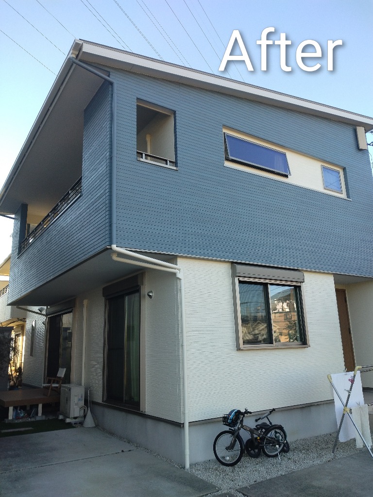 先日、施工させて頂いたお客様のBeforeAfterです✨木目サイディングを青みがかったグレーに施工したことにより明るく可愛らしくなりました☺️
