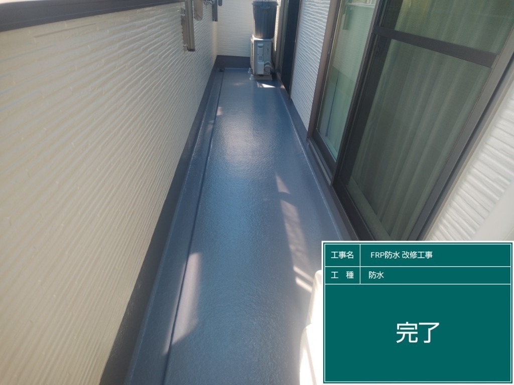一般的な戸建てのベランダはFRP防水が主流になってきました。だいたい10年程で劣化して弱くなります。