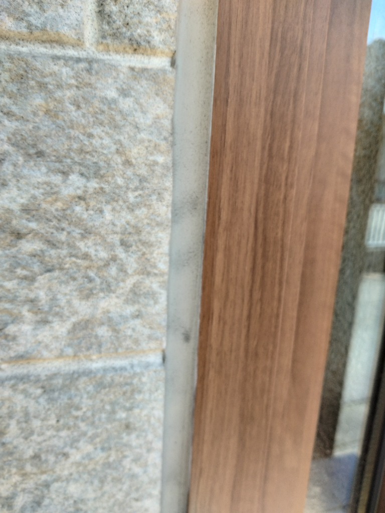 正面は全面タイル張りなのですが、窓枠が木になっております。