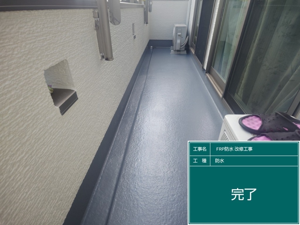 本日は、昨日施工完了したベランダFRP防水のお写真を載せさせて頂きます。