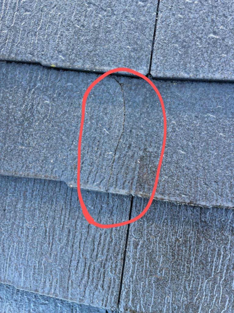 本日は屋根施工前に確認ができた屋根スレートのひび割れです。