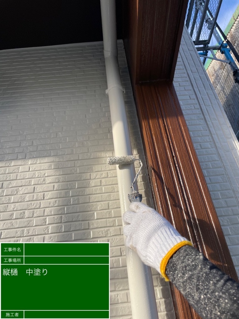 屋根から繋がってる雨樋も劣化します、外壁と一緒に塗装をいたします。