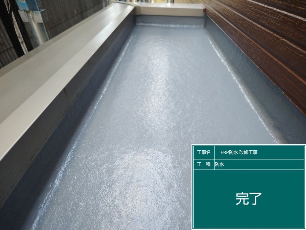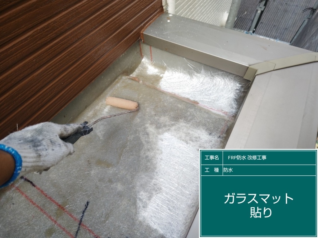 本日はベランダと玄関上のポーチのFRP防水工事を施工いたしました。