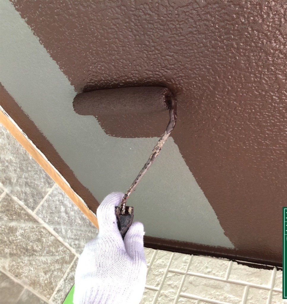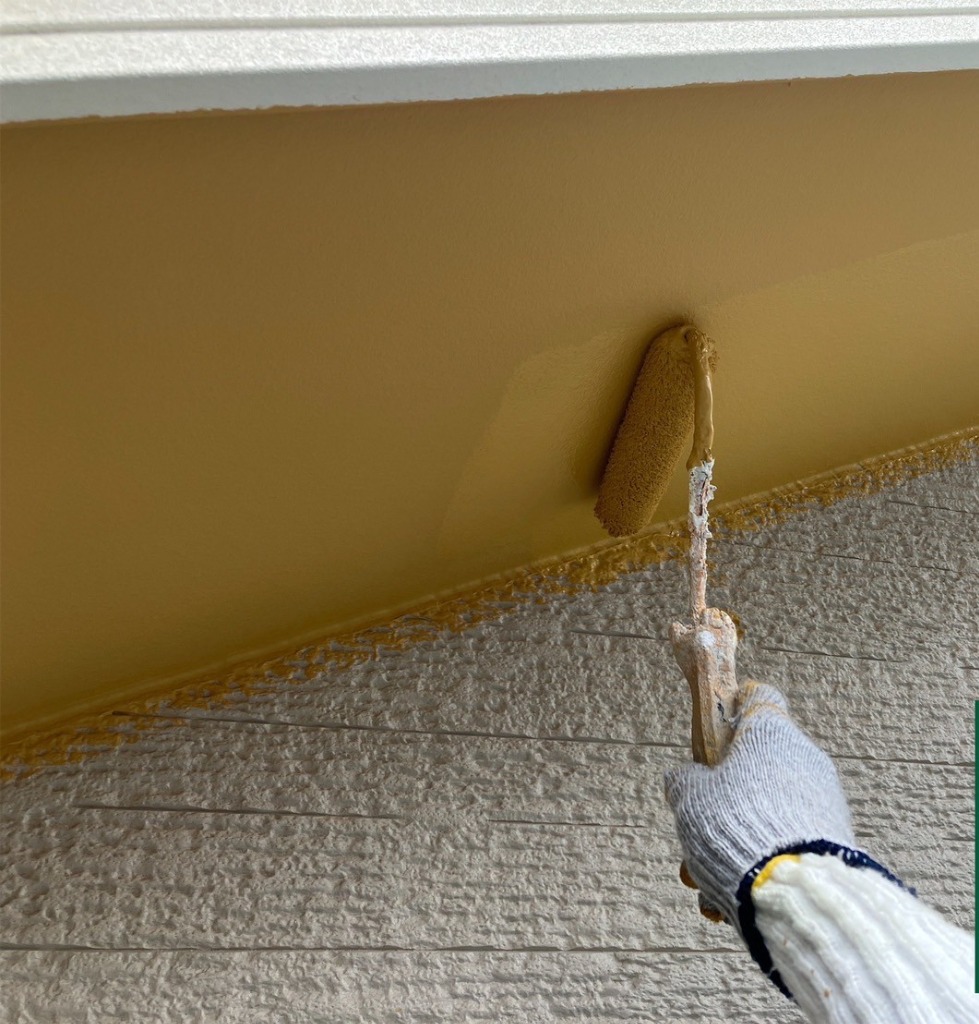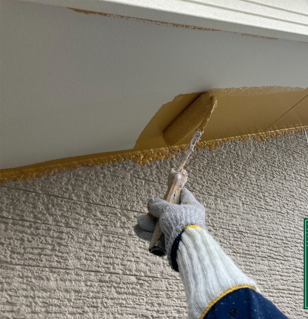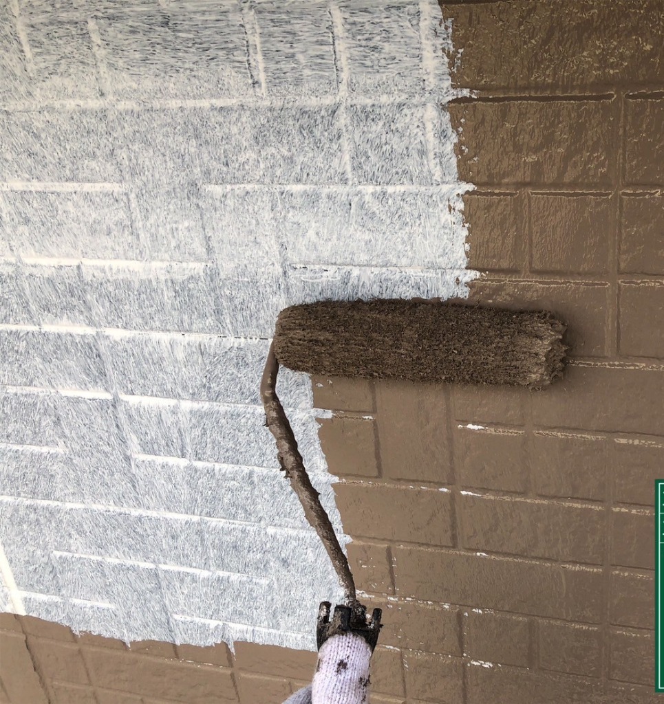 今回、お客様が選んだブラウン系のお色はとても人気色です。弊社はアレスダイナミックTOP(耐久15年)塗料を使用させて頂いております😊白色が下塗り材となります。