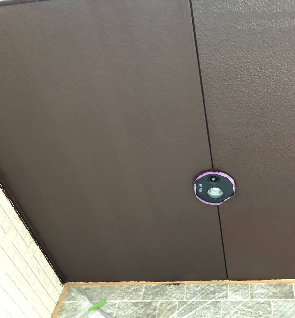 こんにちは、外壁塗装 見積無料の大和建装 山本です。本日はF町のお客様の軒天施工写真を載せさせて頂きます。玄関扉上が綺麗になれば玄関も明るくなりますね😊