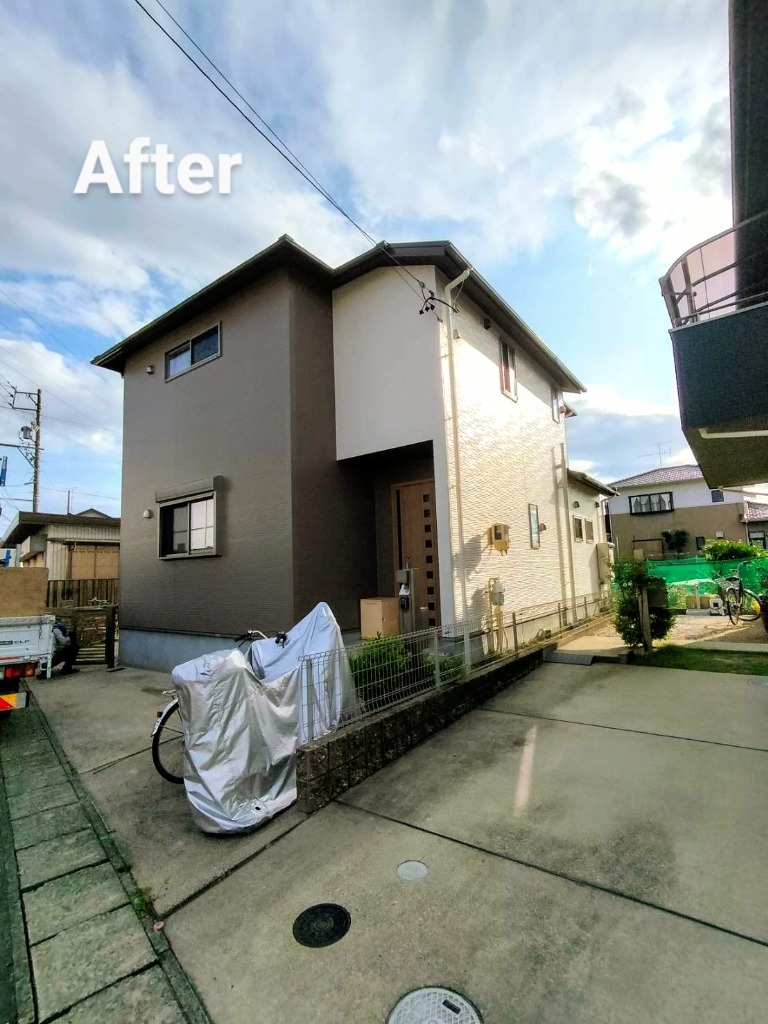 本日のお写真は先日塗装工事させて頂いた築10年のお客様です。初めての塗替えでお色を変更したくないというご希望でしたので、アレスダイナミックトップにある近似色で施工させて頂きました😌